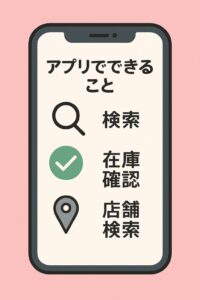アプリは在庫がある店舗を事前に把握できるため、無駄足を防げます。